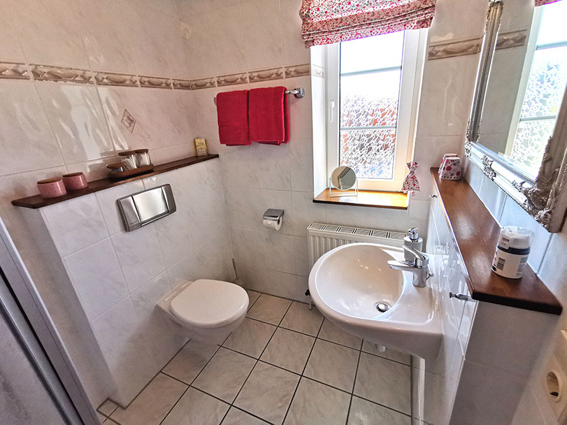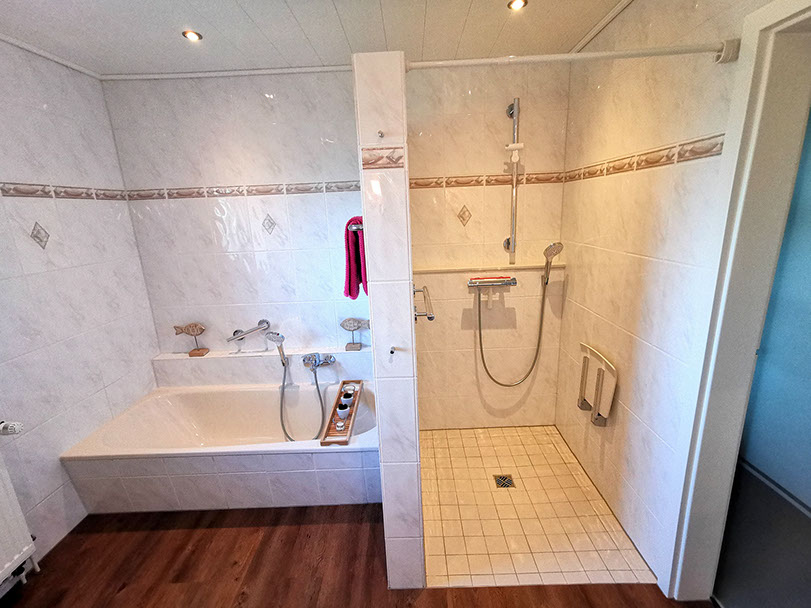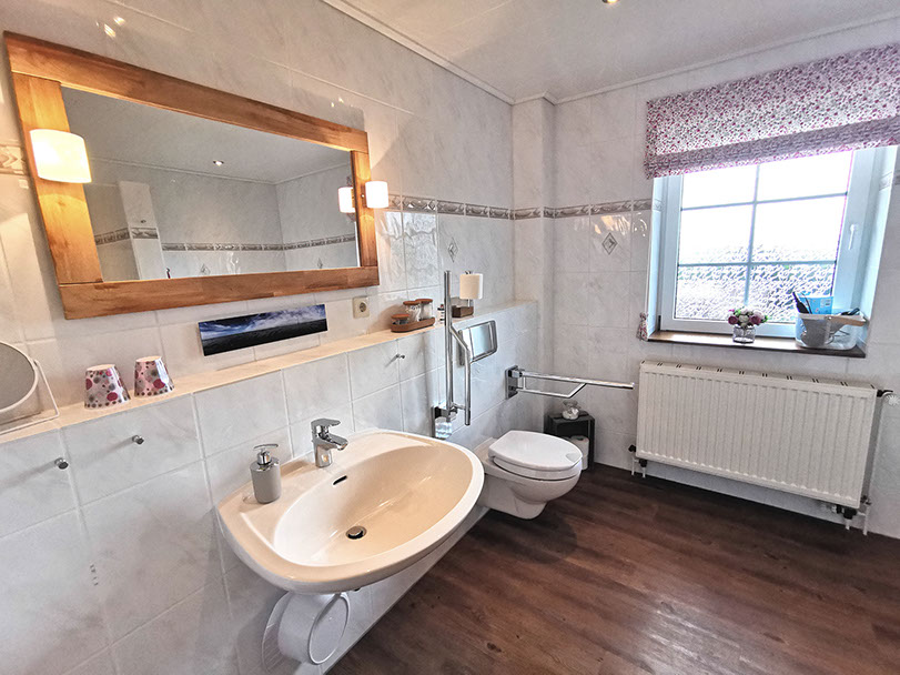 Das Ferienhaus ist barrierefrei und rollstuhlfreundlich. Eines der Bäder ist deshalb speziell für Menschen mit Behinderung ausgestattet. Zwei der Schlafzimmer befinden sich im Erdgeschoss.