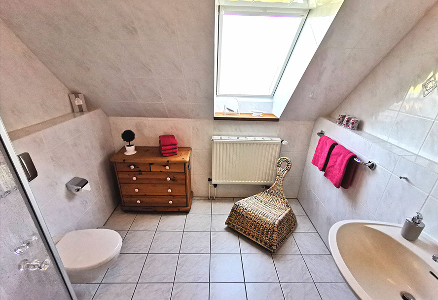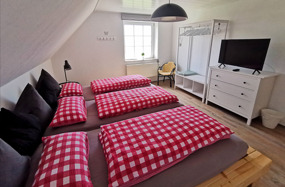 Das Highlight ist unser besonderes Familienzimmer mit XXL Kuschelbett (270 x 200 cm). Dieses Zimmer befindet sich im 1. Stock und ist mit einem weiteren Fernseher ausgestattet.