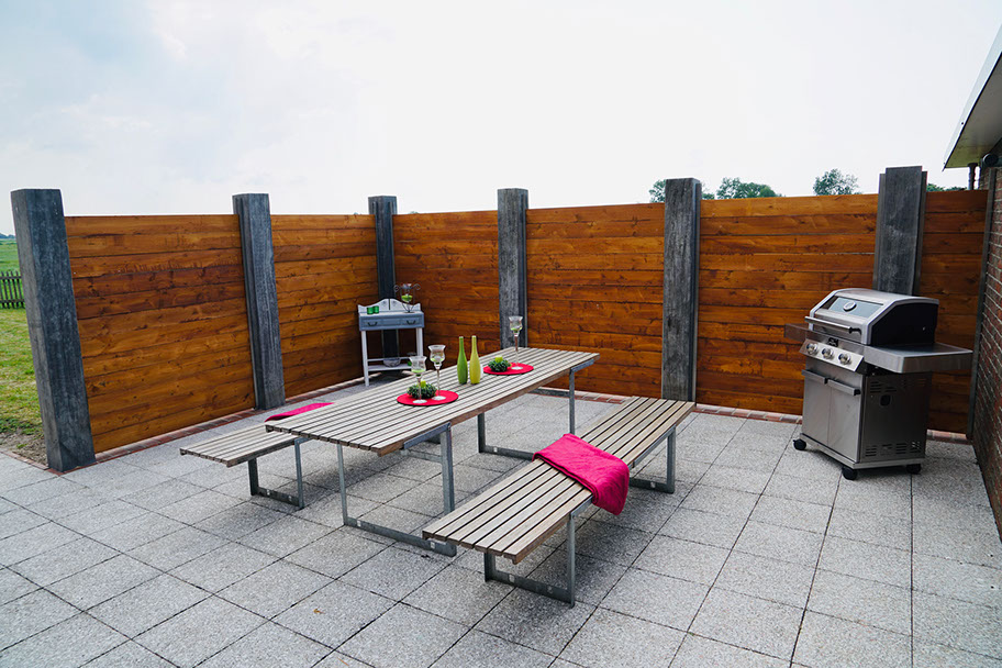 Auf der großen Terrasse und im Garten finden Sie für jede Tageszeit und Windrichtung den passenden Platz. Für Fleischgenießer gibt es einen hochwertigen Gasgrill in ordentlicher Größe.