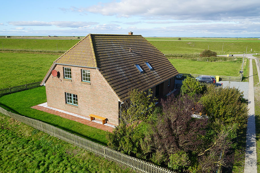 Ferien am Deich! Fernab von allem Trubel ohne Nachbarn. Großzügiges und barrierefreies Ferienhaus in einmaliger Alleinlage mit Topausstattung. Vom Deutschen Tourismus mit 5 Sternen ausgezeichnet. Strand nur 2500 m entfernt.
