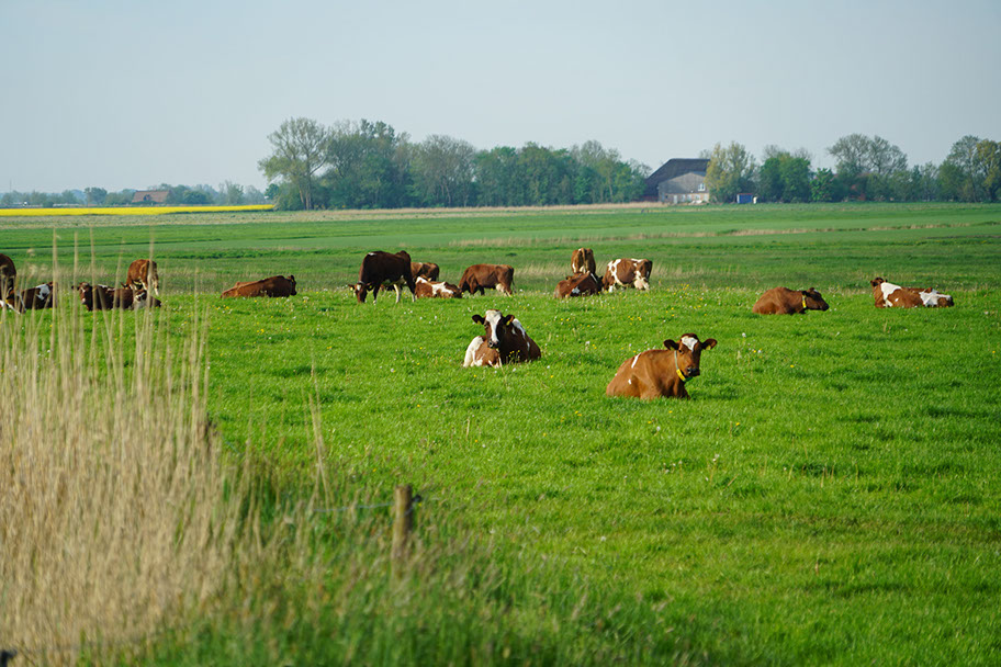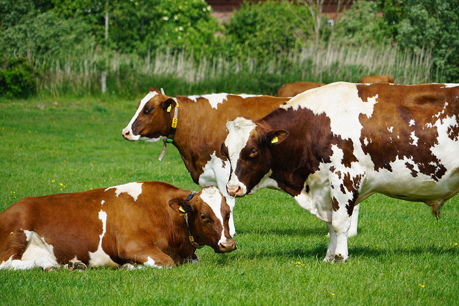 Wir bewirtschaften einen landwirtschaftlichen Betrieb mit Rindern. Diese laufen auf den Wiesen in der Nähe der Ferienwohnung und des Ferienhauses.